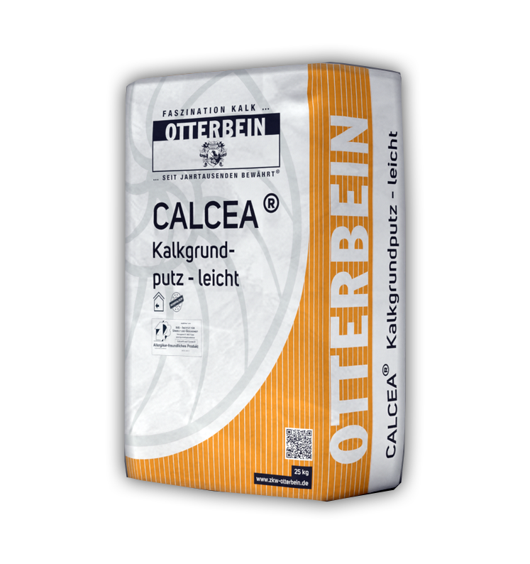 CALCEA® Kalkgrundputz - leicht ist ein werksgemischter Kalkleichtputz aus Natürlichem Hydraulichem Kalk nach DIN EN 459-1, Romankalk, kornabgestuften Kalkbrechsanden, mineralischem Leichtzuschlag, sowie geringen Mengen an Vergütungszusätzen. Frei von Portlandzement.
