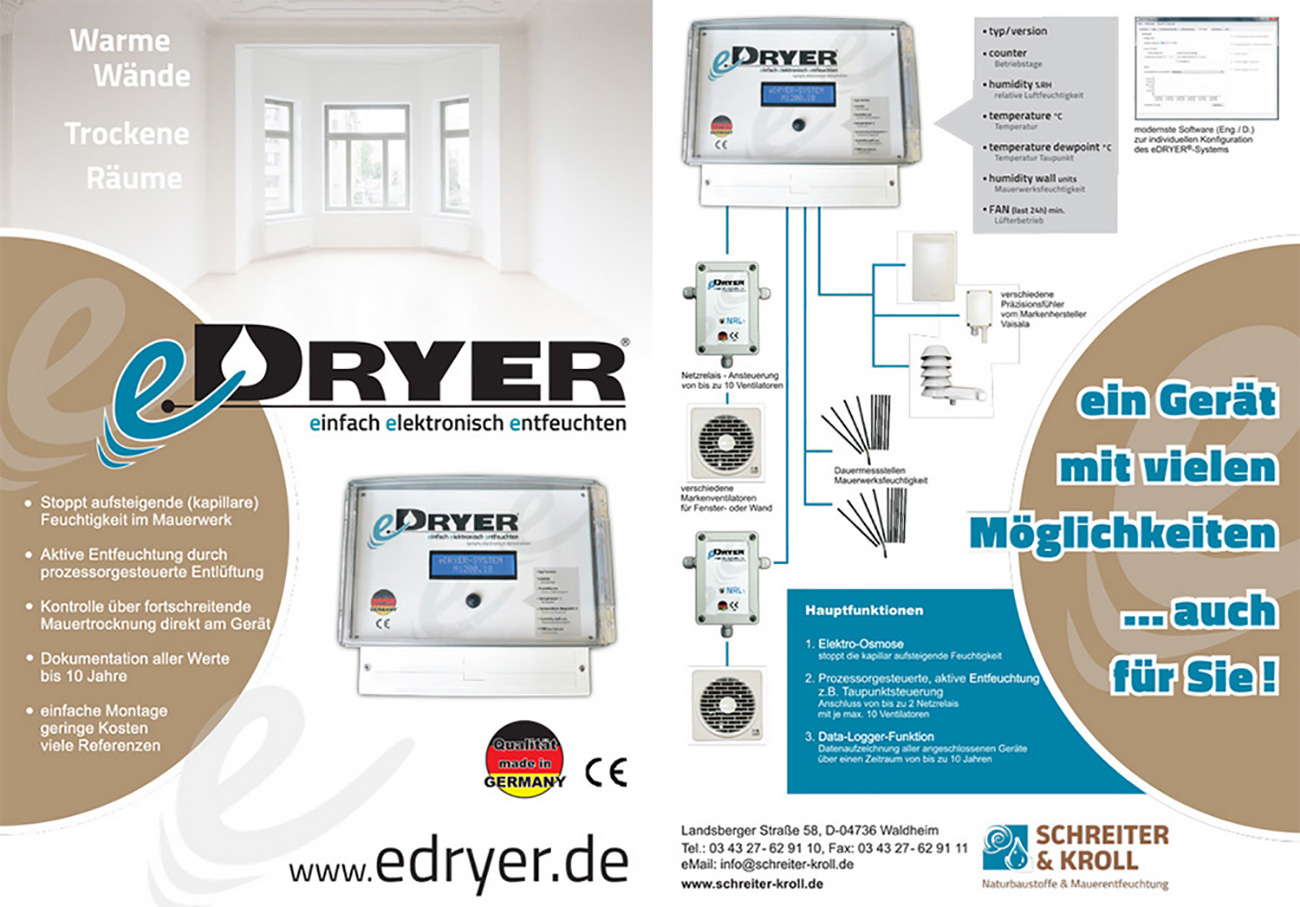 Mit dem eDRYER haben Sie eine zuverlässige Alternative zu arbeitsintensiven, das Gebäude oder die Umwelt belastenden und preisintensiven Methoden.